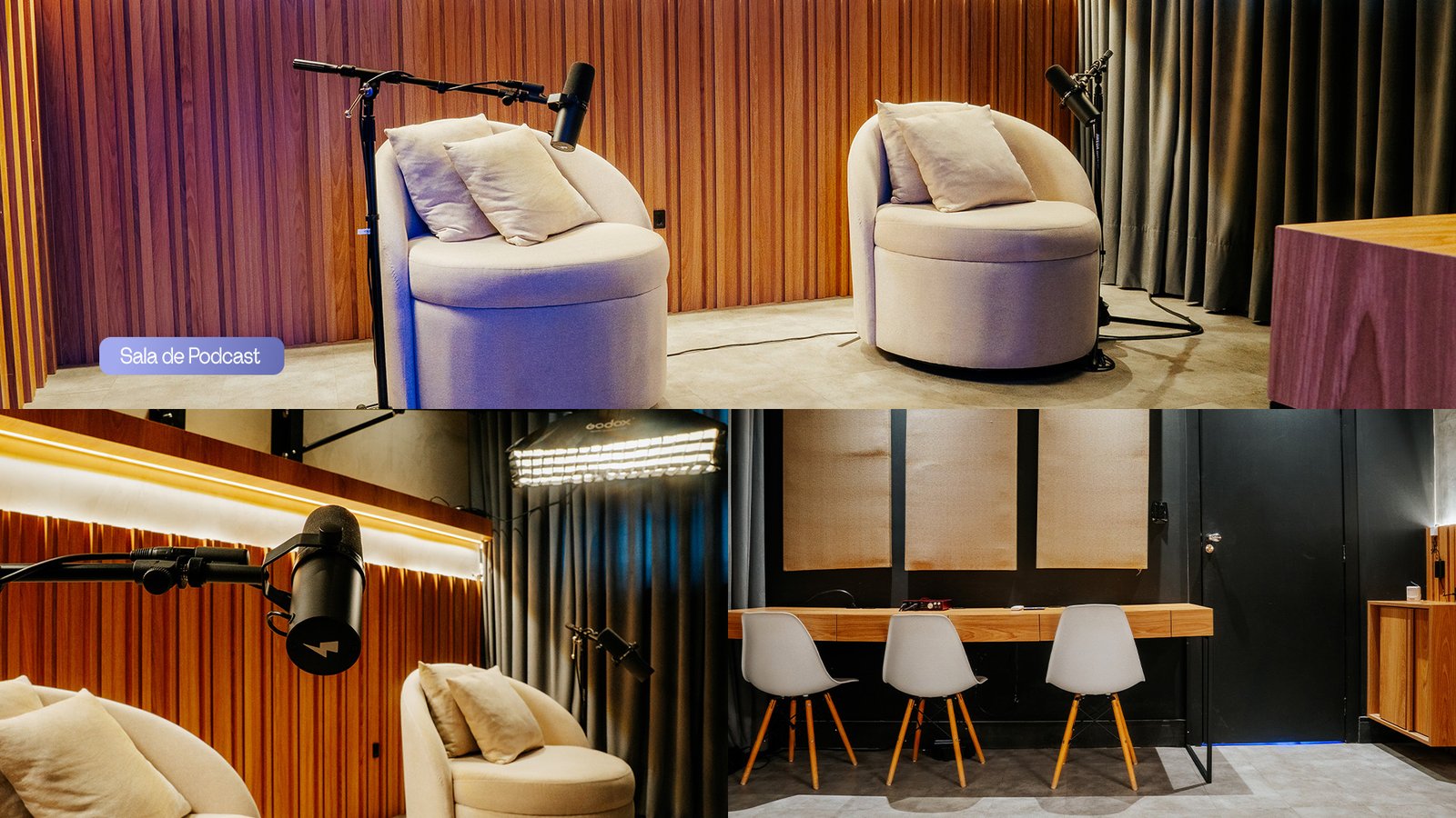 Localizada em Novo Hamburgo, nossa sede foi pensada para entregar conteúdo de alto nível e resultados reais. São mais de 240m² de estrutura completa, com tudo que nossos clientes precisam em um só lugar. Aqui, o audiovisual tem casa própria: estúdio exclusivo para gravações, ambiente preparado para podcast e zero complicação — tudo à disposição, sem custo extra. Porque pra nós, é ouro ou nada.